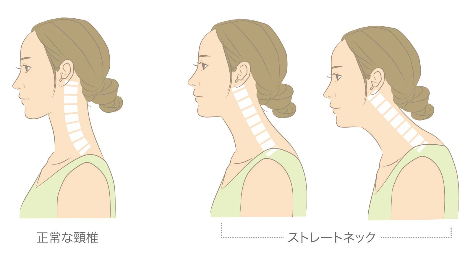 スマホ首が続くと、首の自然なカーブ(前弯)が失われ、いわゆる“ストレートネック”の状態になります。