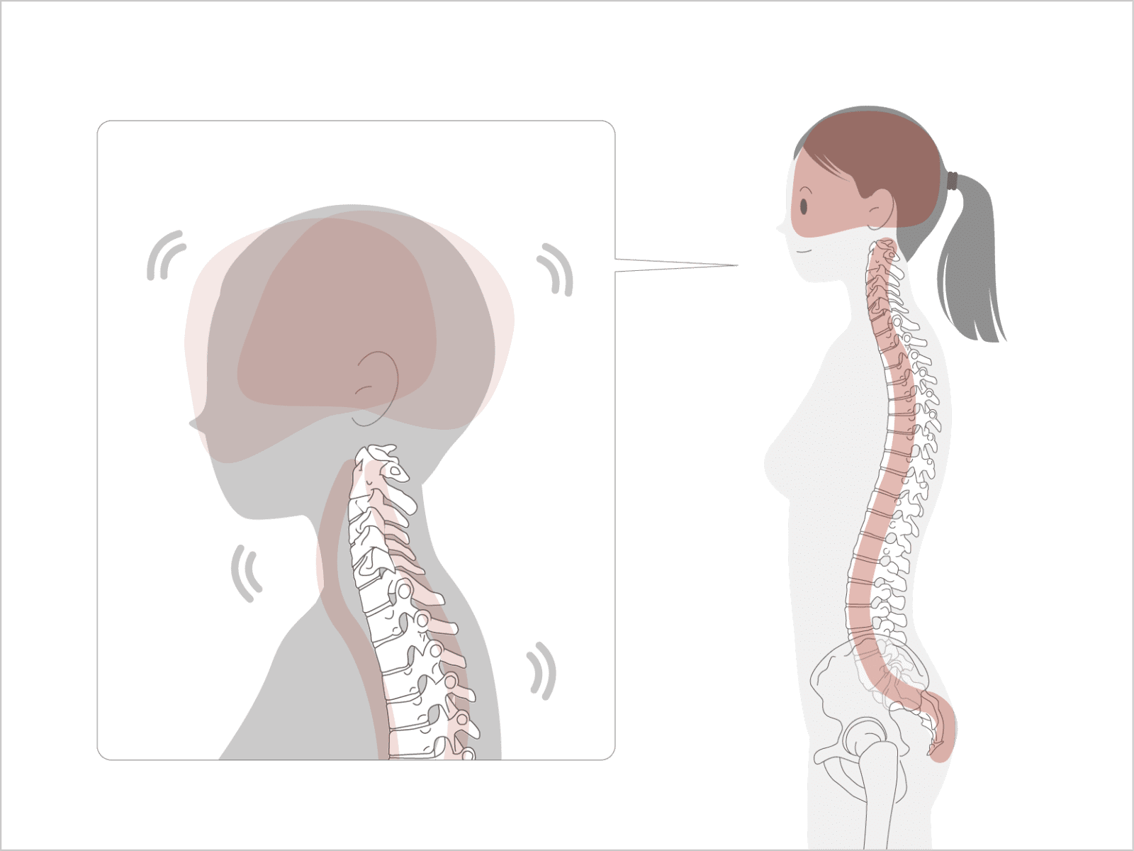 頭は耳たぶより高い位置にあり、頭を支えている脊椎はS字カーブを描きながら自由に動くことでバランスをとっています。その様子を思い描いてください。